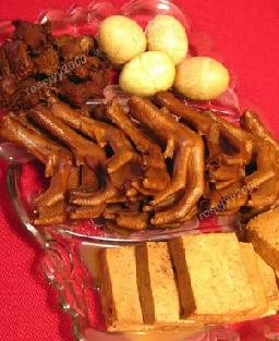 方法:将以上材料倒入大锅里烧开,再慢火熬30分钟左右,等材料出了味,可以放鸭脚了,不过,鸭脚在卤之前最好飞下水;慢火熬,卤鸭脚时,时不时应该翻动下大概30分钟左右,差不多了,不过,大家买的鸭脚也许大小、品种等不同,所以,时间只是给个参考,总之,你想软些就泡久些吧。