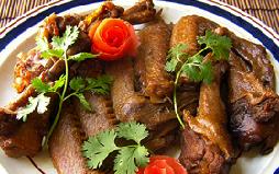 做法:腐上浆,炸至金黄,装盘。之后,浇上沙棘汁即可。 小...