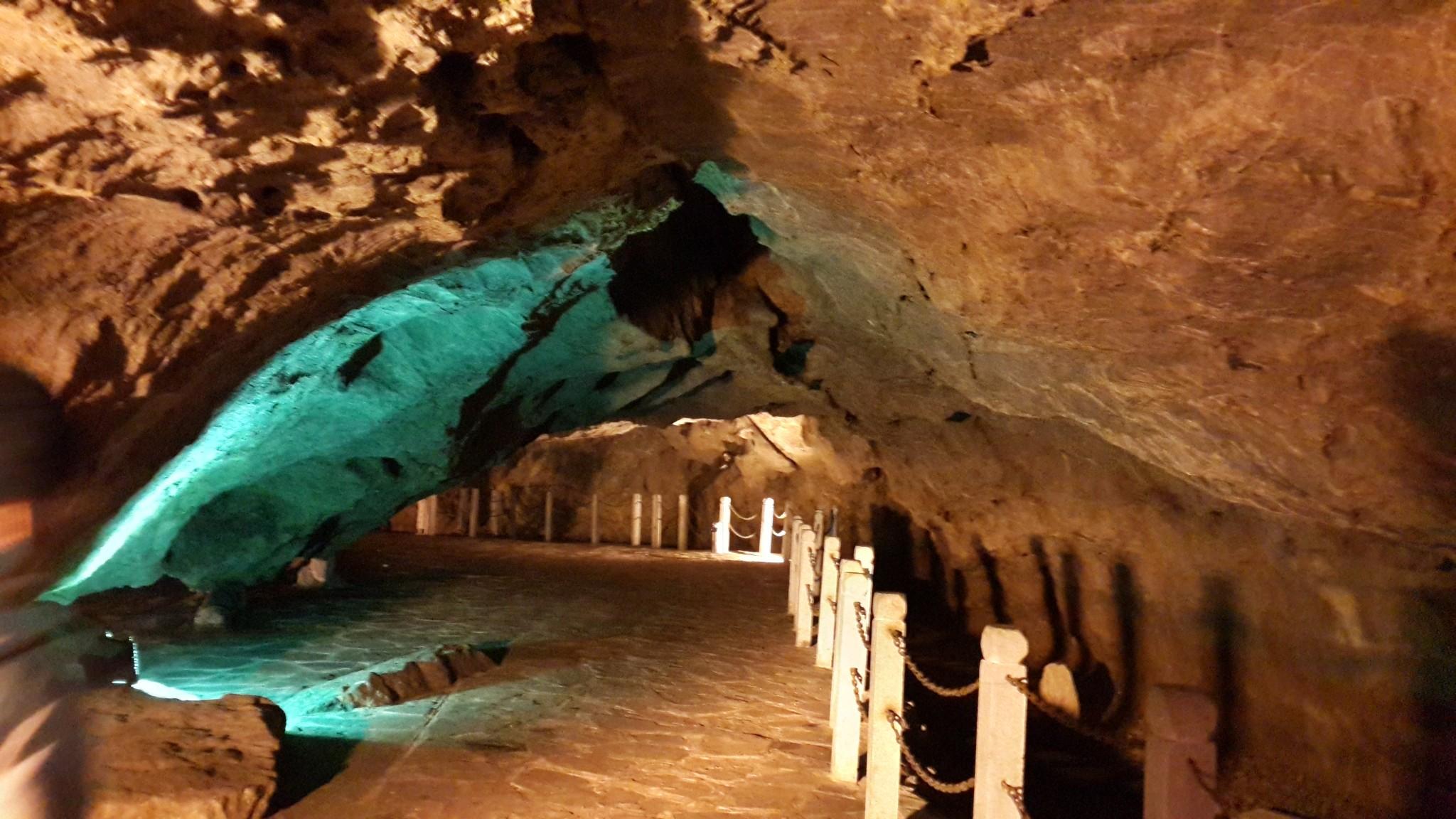 刚走进洞口,我不禁打了一个冷颤,外面骄阳似火,这里却不知谁用黑布遮住了蓝天,周围像黑夜一般,一股寒流扑面而来。本溪水洞包括水洞旱洞两部分,进洞之前会给你发一件大衣(里面常年4摄氏度左右),你首先会进入旱洞,大概能走十多分钟就结束了,重点是水洞,水洞是乘船游览,船是专人驾驶的,平均每艘船能载十人左右,水洞目前探测大约有5000多米,现在已经开发,可以游览的大约3000米,大约需要50分钟游览完,洞外有地质博物馆,里面很涨知识。