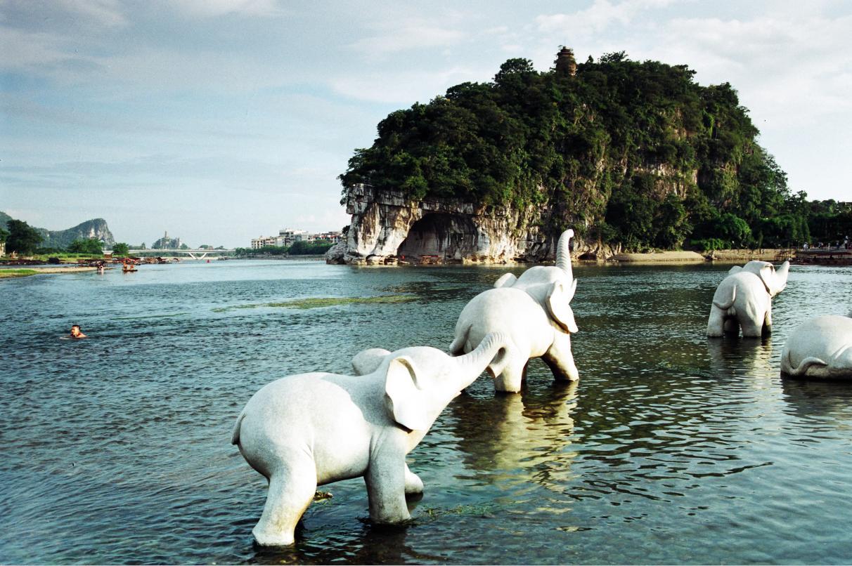 象鼻山景区,象山以神奇著称。其神奇,首先是远观真如睡着的大象,其次是在鼻腿之间造就一轮临水明月,构成“象山水月”奇景。象鼻山的门票是70元,象鼻山爬上去5分钟左右,主要是进去各种拍,去水月洞看看,整个山体三分之二是空的,所以桂林三宝之一的桂林花酒就是放这里发酵的,还有爱情岛也可以去看看。