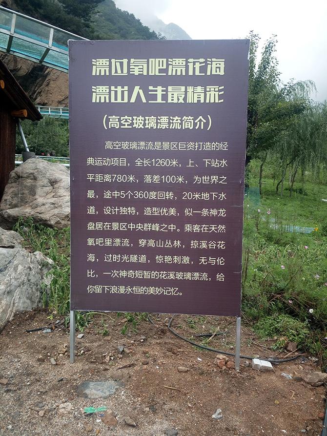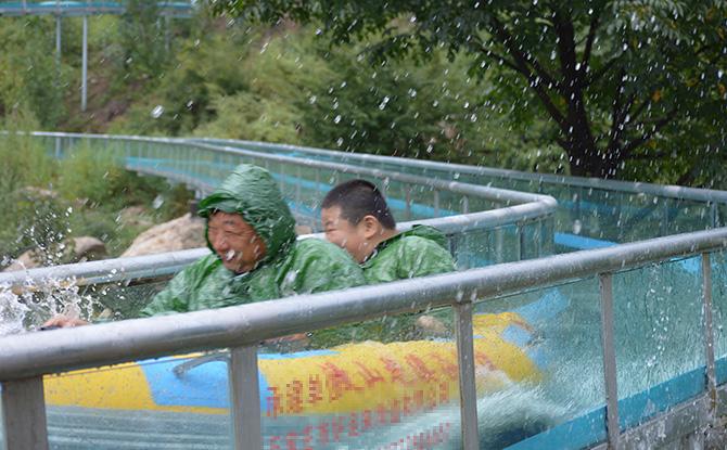 玻璃漂流,其实就是景区里的一个玻璃槽子,人们坐在漂流筏子上,上面放水起到润滑,漂流起来。安全性相对较高,不是老司机也不会翻车。整个漂流全长1200米,垂直高度100多米,自称是世界之最,不过这个量级的确是比较少见的。