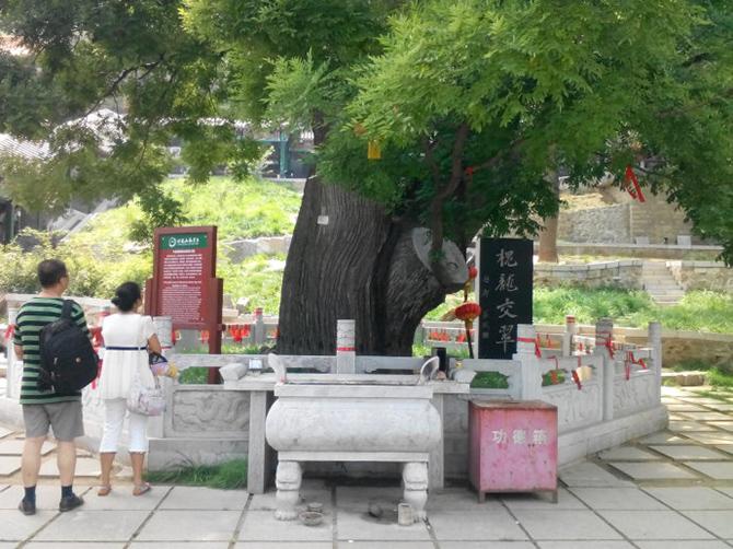 封龙山植被丰富,树木葱郁,泉水清爽。有一棵千年古槐枝繁叶茂,生机盎然。
