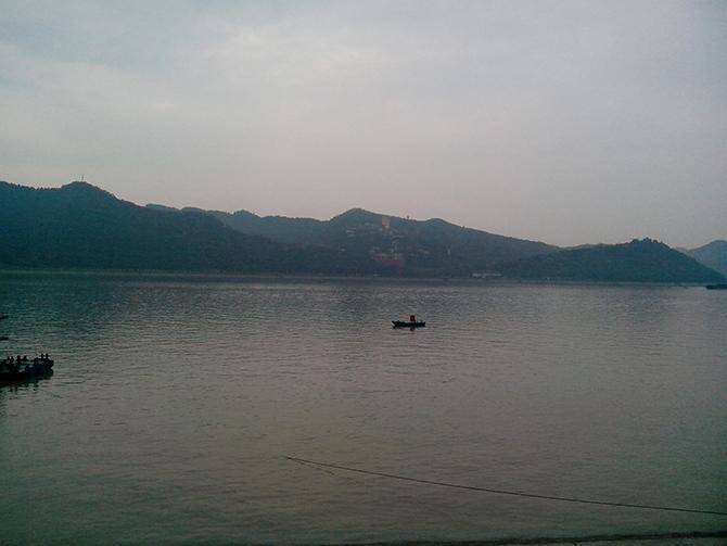 到丰都已经是下午5点,那位大姐还叫我去家里玩,说她儿子在上高中,我想想和她儿子有什么可玩的,又不是女儿,还是自己逛吧。拿着手机导航绕来绕去,这丰都的路真乱,手机定位也不准,让我绕了好多冤枉路,后来走到江边,查到江对面就是丰都鬼城,过去可以坐公交(6元还是10元,忘了),也可以坐船(2元)。但是看着那宽阔的江面,在风里摇曳的小木船,不禁打了个寒颤。那天天气也不好,过去之后感觉也逛不完,而且我一个有也有点不敢住那边,就想先在车站这边住下第二天一早再去。