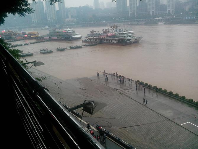 洪崖洞出来,就步行至朝天门。我旅游的时候很爱走路,因为坐车会错过很多风景,当然除了赶时间。一路淅淅沥沥的小雨,伴我来到朝天门码头。没错,这就是个码头,还有个广场。虽然有名但貌似没啥好玩的,或许也就是这两江交汇地才有名的吧。
