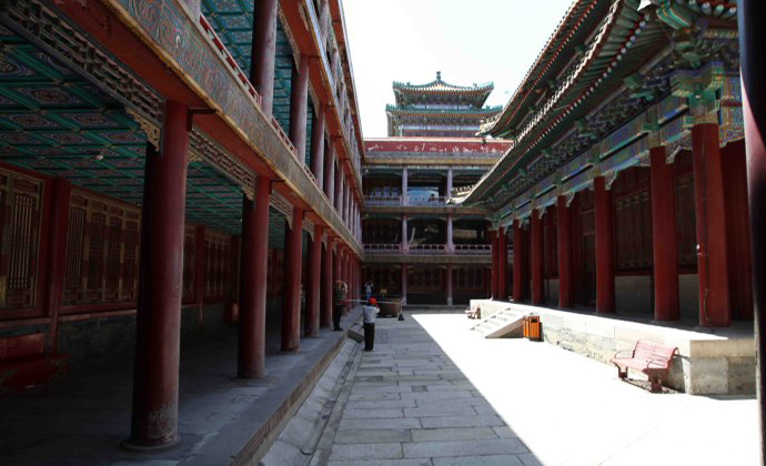 再来说一下普乐寺,普乐寺位于河北省承德市避暑山庄,武烈河东岸,坐东面西,居溥仁寺东北,与安远庙南北相峙,正面隔河遥对永佑寺舍利塔,中轴线隔山宜指磬锤峰。