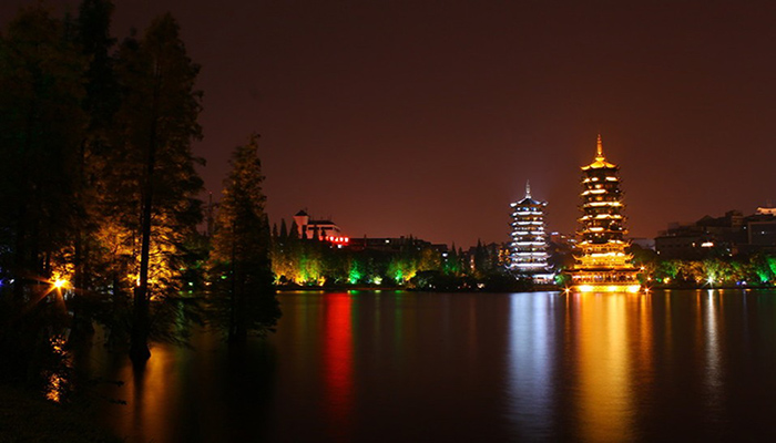 晚上先是去正阳步行街逛了一圈,靠近两江四湖这一侧就是尚水美食街了,在那里吃的晚餐,挺好吃的。之后坐大游船夜游两江四湖,70分钟,船票160,门票也挺便宜。两江四湖真的非常漂亮,不愧是桂林名片,是一个超大的开放景区,两条江和四个湖环绕的环城水系,是不需要门票的,可以漫步,因为我们想更好的游玩所以提前预定了船票。