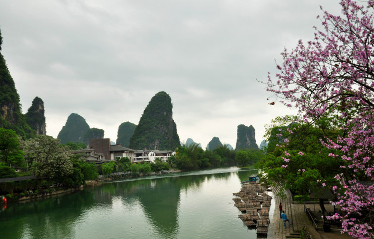中午在兴坪古镇逛了差不多1个小时,然后跟车去了阳朔,到了阳朔是下午13:30了,放置行李之后稍作休息,下午14:30租了一辆电车就开去十里画廊了,电车比较贵,租金50元一天,要押身份证。依次去了蝴蝶泉,大榕树和聚龙潭景区,个人感觉这几个景区都不错,晚上去了阳朔西街,还真是热闹,不愧是中国洋人第一街,西街有很多小东西卖,古玩字画纪念品等都非常多,还有各种酒吧茶馆。