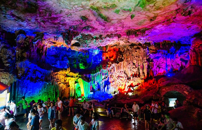 前一天晚上就上网查询了一下,银子岩门票84,遇龙河160元/筏,坐2人,世外桃源80元,这几个景点都是我们想去的,但是相隔都比较远,来回车费都挺贵的,后来咨询了一下房东,报了一个一日游的纯玩团,228元/人,行程结束的时候还把我们送回了桂林,连返回桂林的车费25元都省了。(插个题外话,这三个景点也可以分别去,都有景区专线车,价格是多少现在忘记了,不一定全部都去,选择一两个游玩也行)