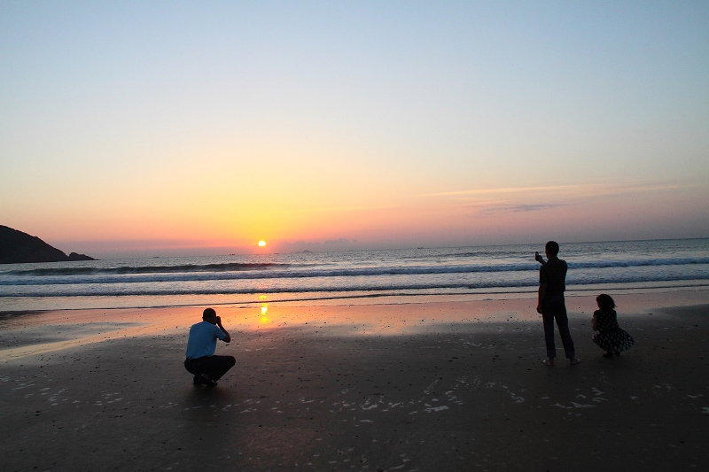 来大连看看日出,不枉此行,大连日出最佳点,个人认为是海之韵公园。海之韵公园在大连东部棒棰岛附近,原来叫东海公园,后来经修建改为海之韵公园,现在是免费公园。选择交通的话是最好在大连火车站乘大连环城旅游公交车在棒棰岛站下车直接可进入公园。假如你是逛完老虎滩公园的话,直接沿大连滨海路向东徒步约7公里就可以进入公园(PS既然你是从老虎滩公园来的应该就不是奔着日出来的啦)。百度说10次日出有1次能看到已经是人品爆发了,come on!大家赶紧来拼拼人品,万一呢!还有就是建议夏天来看,初春或者初秋可能会被冻僵。