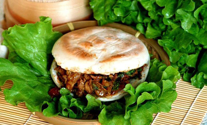 腊汁肉夹馍是陕西省的地方特色小吃之一,肉夹馍的叫法源自于古汉语中。传统的陕西腊汁肉夹馍的制作方法包括卤汁腊肉的制作(选料与刀工、腌渍风干、卤肉)和白吉馍的制作。主要选用五花猪肉、面粉、高汤等原料加入各种香料和调味料加工而成。