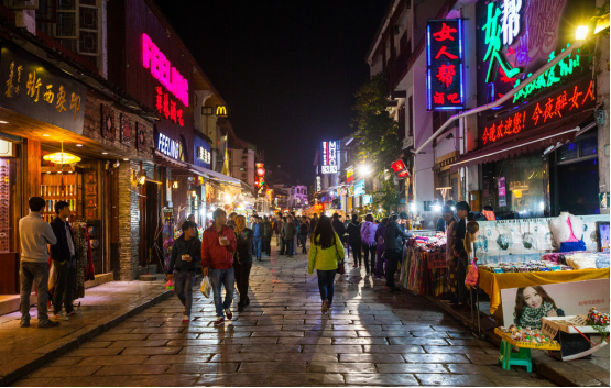 从民宿走上几十米是喧闹的西街夜市,虽然快九点了,但人还是很多,各种小吃依然火爆。街道两边还有很多酒吧,大部分是静吧,从门口能看见驻唱歌手。