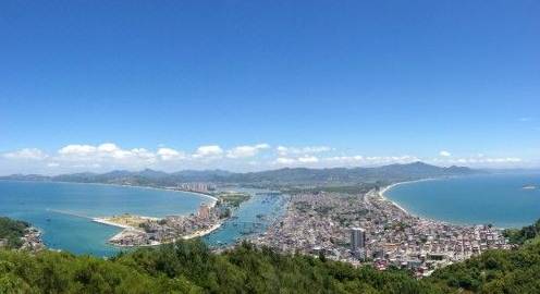 大角湾湾形神似巨大的牛角,并因此得名,是著名的4A级景点,大角湾面向大海,背依翠玲,峰顶经常是云雾缭绕,让水更秀,峰更美,风景区环境优美,这里的阳光、沙滩、海浪会让你终生难忘。
