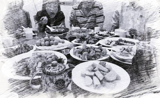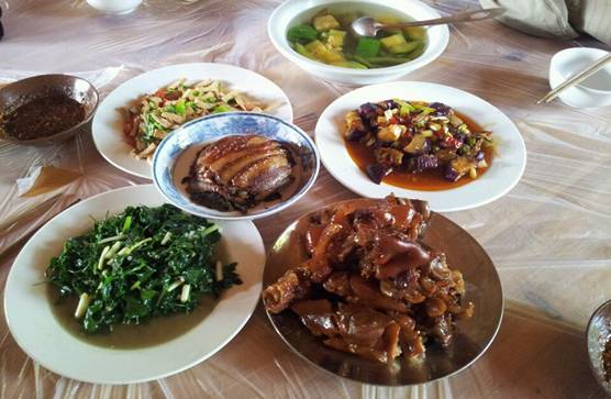 晚餐是一大桌子菜,北京烤鸭、炒肝、爆肚儿、奶油炸干等等,北京烤鸭还是挺好吃的,比较酥软、味道足足的,别的我没什么感觉。