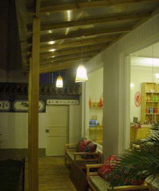 晚上坐在廊下,和店主谈谈心,尝尝她做的点心。和其他舍友一起看看电视,好不热闹。