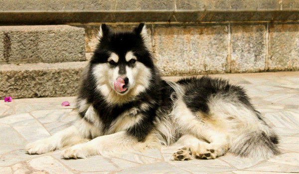 路过一家小店,门口的阿拉斯加慵懒的躺着,偶尔深处舌头,像我的镜头买个萌!