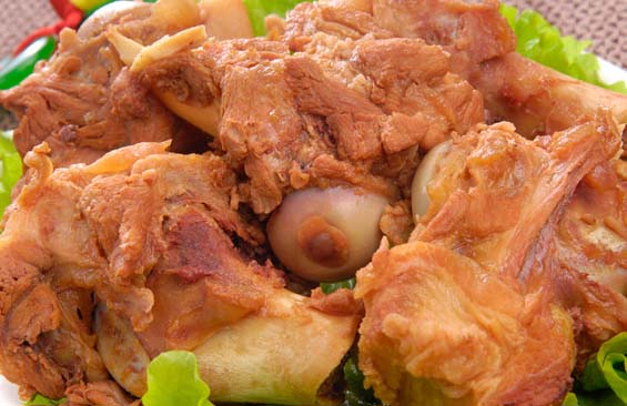 酱骨头最辉煌的时候曾经在长春的繁华路段占据长长的一条街。现在只有一家王记酱骨头生存下来并发展壮大。这种酱骨头分为脊骨和棒骨两种。脊骨吃肉、棒骨吸髓,香腻十足。这店里的土豆酱也是用酱骨头汤做成的,很有特色。