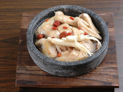 翡翠人参茅台鸡是长春名菜之一,此菜将母鸡、茅台酒、吉林人参汇于一菜,烹调制成。该菜色彩绚烂,造形美观,香味四溢,是一道药膳结合、荤素搭配、特色鲜明的地方名肴。