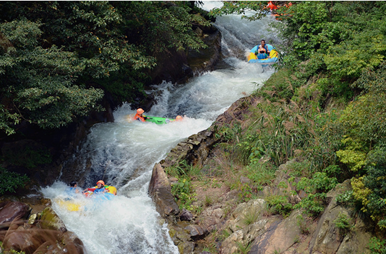人在水中漂,如在画中游,游人可自由选择不同漂程感受不同的的刺激乐趣,既可享受澎湃刺激又安全可靠,漂过一山又一山,赏过一景又一景,令人流连忘返。突兀间,一块巨大的石头拦住去路,几经峰回浪转;却又顿觉豁然开朗,沿途风景各不相同,可谓“一步一景,远近不同天”。