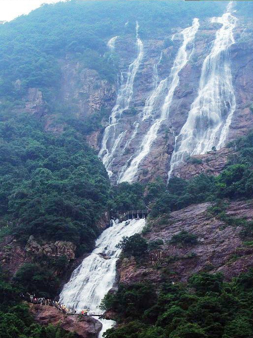 壮观的白水寨瀑布奔流而下,水花扑面而来非常清凉。