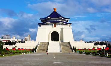 为纪念蒋介石而筹建的,其顶部很像天坛祈年殿造型,通体呈白色,如同一座坚实的堡垒。