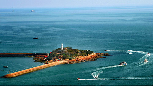回澜阁的对面有一座小岛,位于胶州湾入海口北侧的青岛湾内,美景天成。其海拔仅为17.2米,面积也只有0.012平方公里。该岛小巧如螺,山岩峻秀,林木葱茏,因此被称作小青岛。小青岛是1900年德军建造的,乳白娇小而又俏丽的身影是每个青岛人心底回忆的存在。岛上奇异的百合使人仿佛置身仙境般。每逢夏季,海风吹拂,树木葱郁,有“琴岗翠滴”的美誉,因其形状如同一把古琴,故又有“琴岛”之称。 全岛栽种着很多伤心悦目的绿化植物其中以黑松为主。著名作家郑振铎称“琴屿飘灯”一景的妙处在:“海面上时明时暗的红灯,如同乘舟于海上。