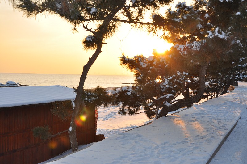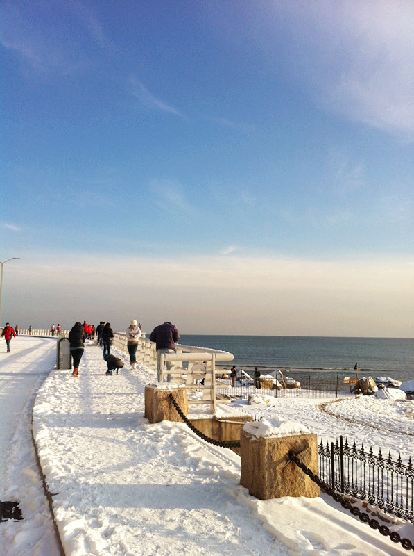 因为刚入学就快到十月份了,天气开始渐渐变冷,游客也慢慢变少了,北戴河进入了旅游淡季。雪花飘落,游人甚少。但身处小岛的我们,没有理由不去看看冬天北戴河雪后的美景啊,白雪皑皑,偶尔有附近居民遛弯,少了夏天旺季的喧闹,冬天的北戴河似乎变得更加迷人。