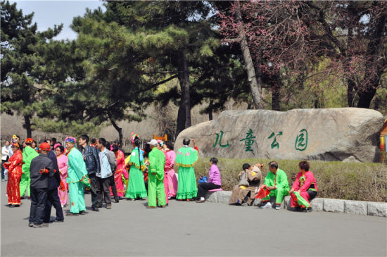 与牡丹园一条马路之隔的就是儿童公园了,闲暇时间,人们就都聚集到儿童公园门前来了,这里有着不少民间艺术家,吹拉弹唱,样样精通,旁边众人也是听得津津有味。