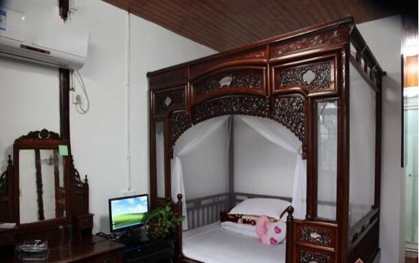 房间里的雕花床,比较复古的装修,以深颜色为主的色调,迎面吹来一股浓浓的中国风,古朴的房间中也融合了现代生活的理念。当中国风和现代感碰撞,没有喧宾夺主,反而使两种风格的精华凸显出来,让你置身在穿越古今的视觉盛宴中。