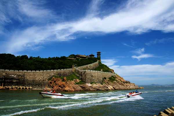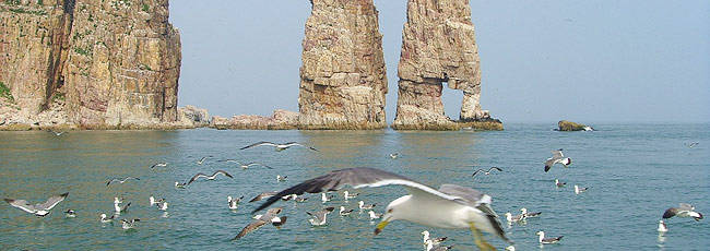 长岛(庙岛群岛)“中国最美的十大海岛”之一,位于蓬莱海岸向北约7海里的大海上(蓬莱港乘船约半小时航程),是传说中八仙过海要去的地方,由32个岛屿组成,总面积56平方公里,海岸线长146公里。长岛是一个风光秀丽、气候宜人、山青水碧、百鸟生辉的风景名胜区。