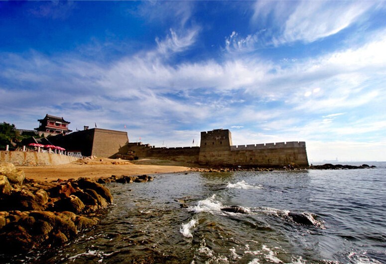 位其之后人们会提到的就是雄伟的“老龙头”了,它位于山海关城南4公里的渤海之滨,这里是明长城的东部起点。老龙头地势高峻,有明代蓟镇总兵戚继光所建“入海石城”。入海石城犹如龙首探入大海、弄涛舞浪,因而名“老龙头”。 老龙头景区由入海石城、海神庙、靖卤台、南海口、澄海楼、宁海城和滨海长城七部分组成。 古长城宏伟的气势每年都会吸引大批的游客前往此处来欣赏古代工匠伟大的智慧结晶。