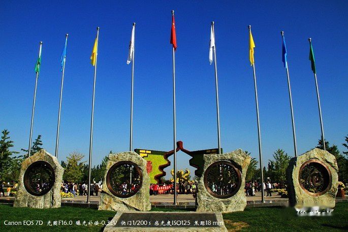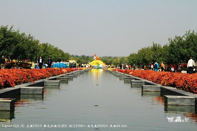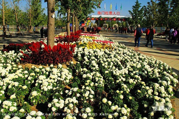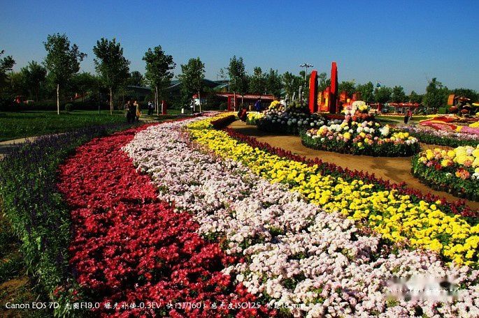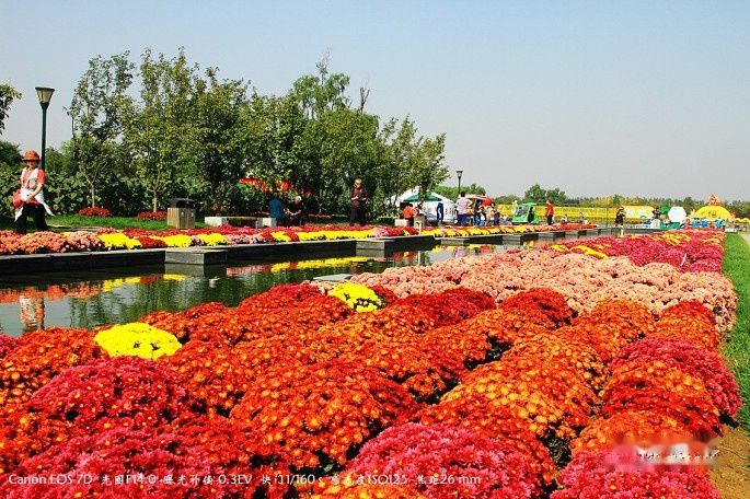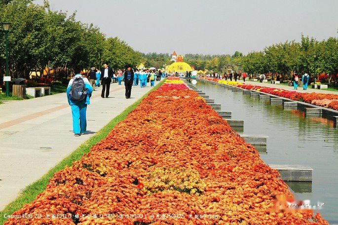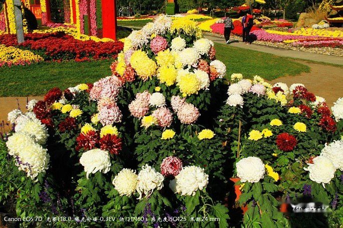 过了国旗,就是诺大的花神广场,占地面积5万余平方米,里面布置了20多个各省主要城市搭建的花坛,四周和中间辅以各色菊花铺就的花路和一个一个硕大盆菊搭成的小花坛,中心便是艳美无比的什锦菊。