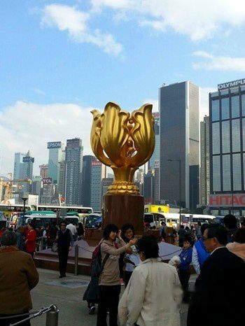 金紫荆广场,人那个多啊。不知道团队到底留了几分钟,反正连香港会展中心后面那个香港回归祖国纪念碑都甚少有人走过去,全部集中在这朵“金花”旁边照“集体照
