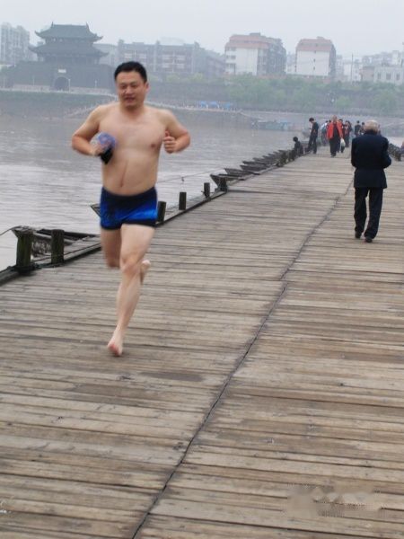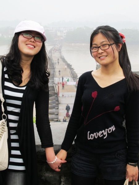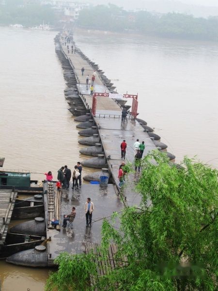 登上宋代城,一路向南,见两位大学生,我们相互给对方拍照,互通了情况后,大家一同去看浮桥。