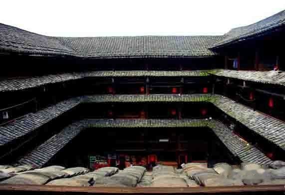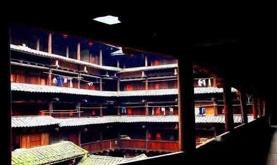 裕昌楼号称”东倒西歪楼“,部分支柱左倾右斜。楼内三楼四楼回廊支柱朝一个方向(顺时针)倾斜,五楼回廊支柱又朝另一个方向(逆时针)倾斜,最大的倾角达到15度,好险啊,但是裕昌楼建成至今,经历多次地震,却依然屹立于此。