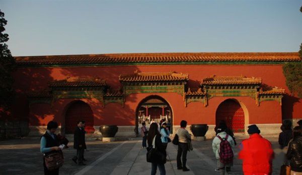 皇极门前有东西狭长的小广场,其西侧为锡庆门,西出不远即景运门,东侧为敛禧门,东出即南北十三排,正南为皇极门前的琉璃影壁九龙壁。