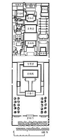 宁寿宫宫区面积很大,可分为四个部分,一为皇极门内的皇极殿和宁寿宫;二为养性门内的养性殿、乐寿堂、颐和轩等处;三为西路的宁寿宫花园;四为东路的畅音阁一带。