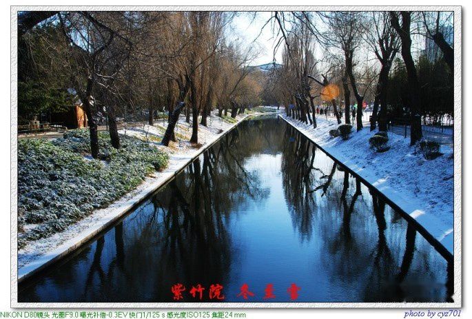 冬至夜降下今冬北京的第六场雪。今年北京的雪贼多(“贼”老北京话,“贼”即特别,非常之意“贼多”就是特别多),报道说,从11月3日初雪到现在降雪量已达86.5毫米,是常年同期降雪(11毫米)的近8倍。刷新了有气象记录以来“冬半年”降雪量记录。这场雪虽不大,但因气温低,地上结冰了,雪不是落地即化留存的时间长,早起天放晴,跑到紫竹院公园找雪景,拍下冬至雪的如是画面。