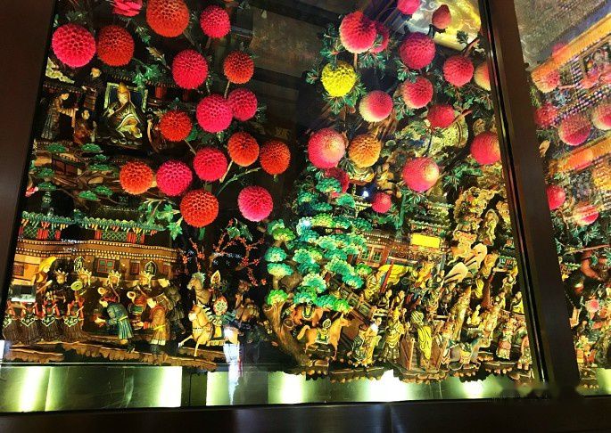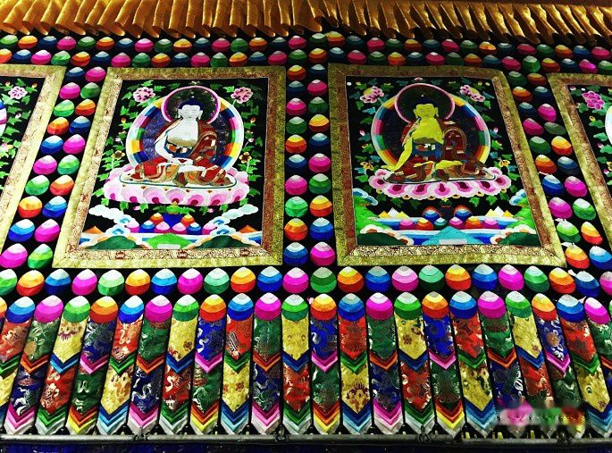 来到塔尔寺,不得不提寺内的艺术三绝:栩栩如生的酥油花,绚丽多彩的壁画和色彩绚烂的堆绣。