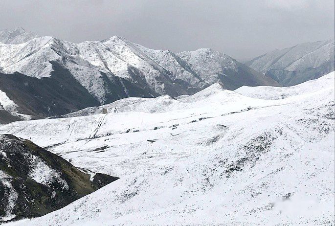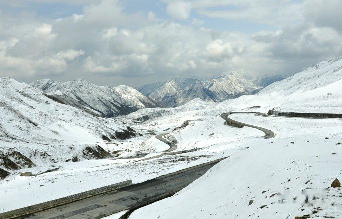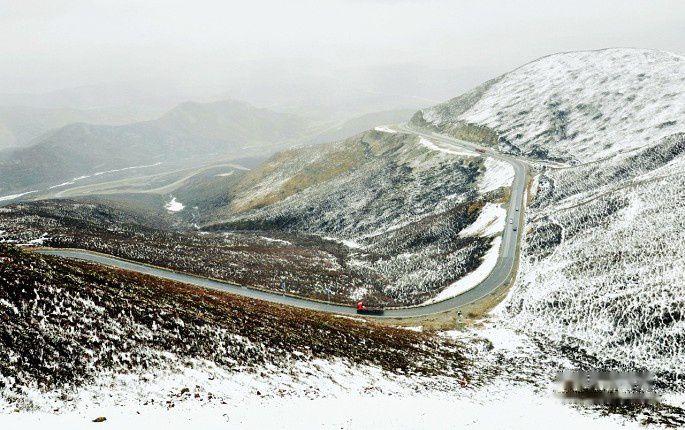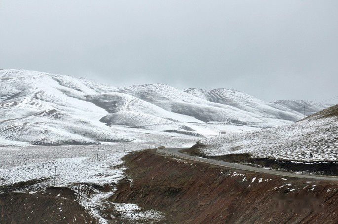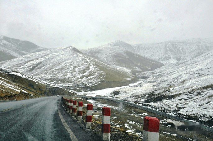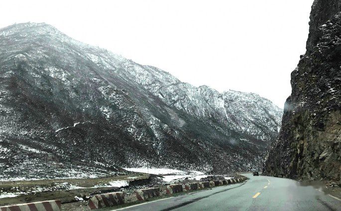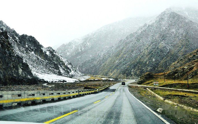 当车进入白雪皑皑的群山,脑子里即时浮现出二个字:大美!
