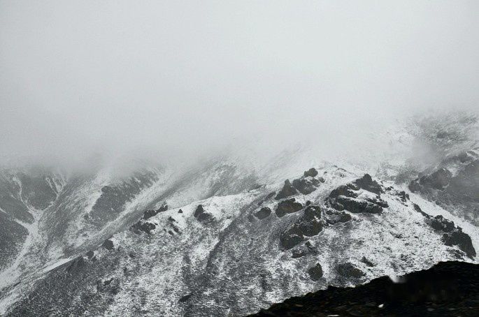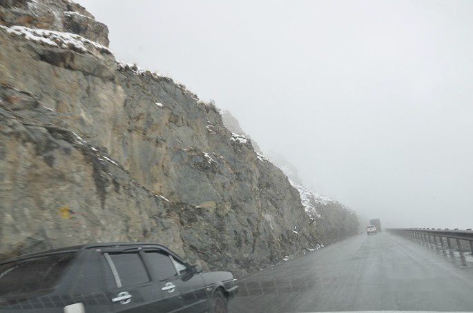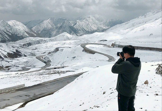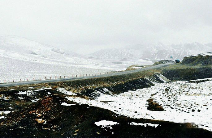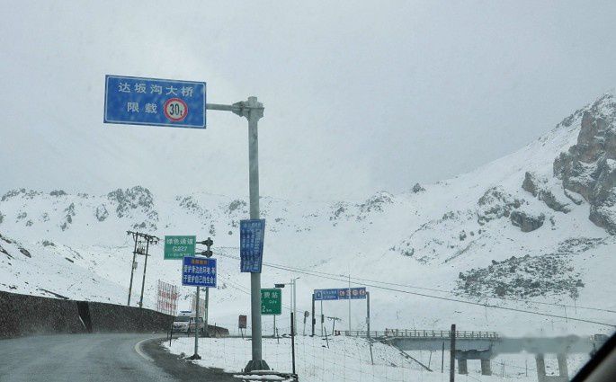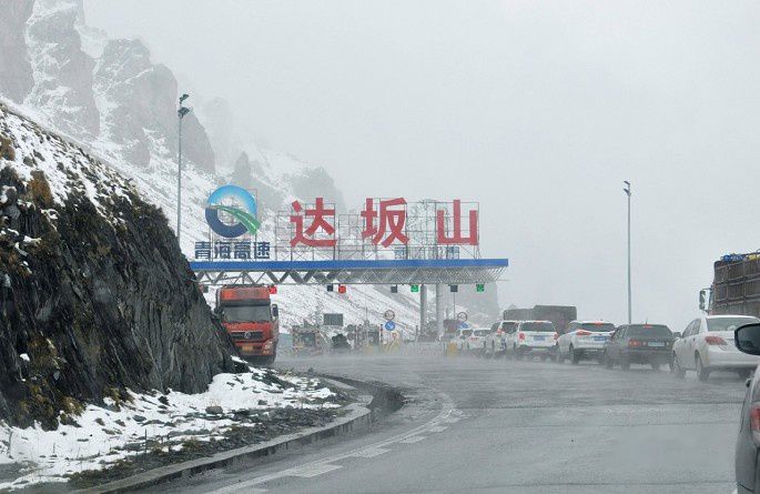 进入高海拔的达坂山后,雪越下越大,能见度越来越低。