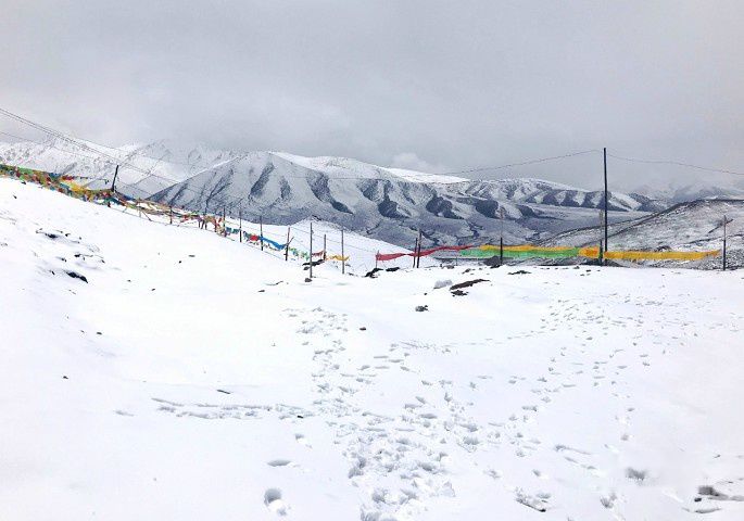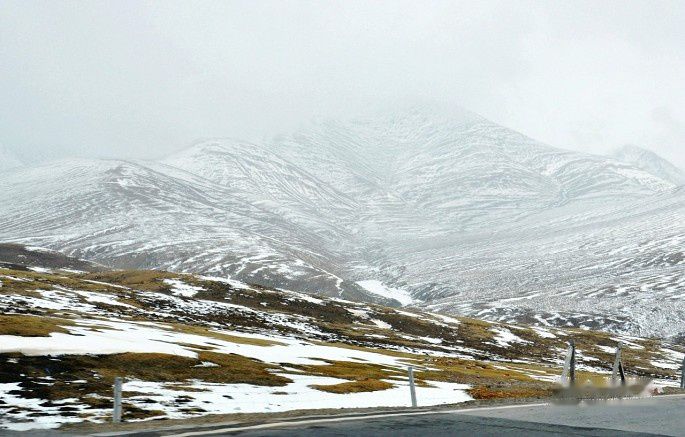 五月的山区仍然一路飘雪,白雪皑皑的雪山美景给了我们这些来自南方无雪区的游客一路惊喜。
