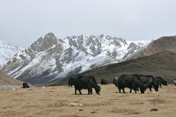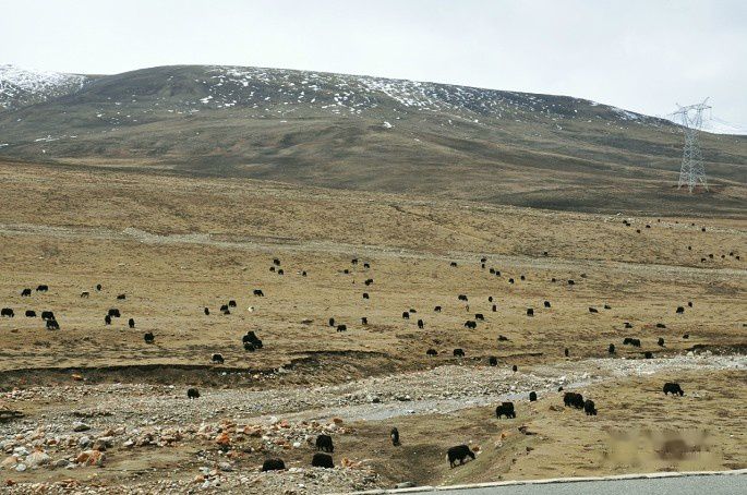 翻过拉脊山口后开始走下山路,走出雪线区渐是满山悠然自得的牛羊。
