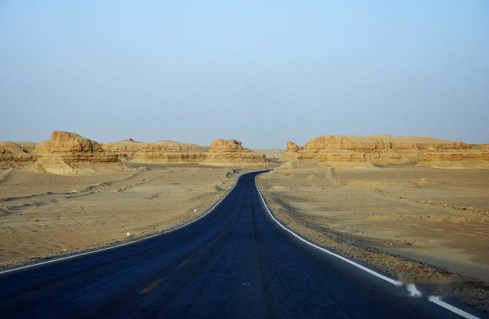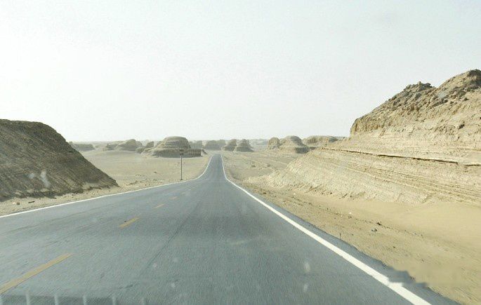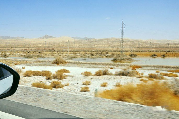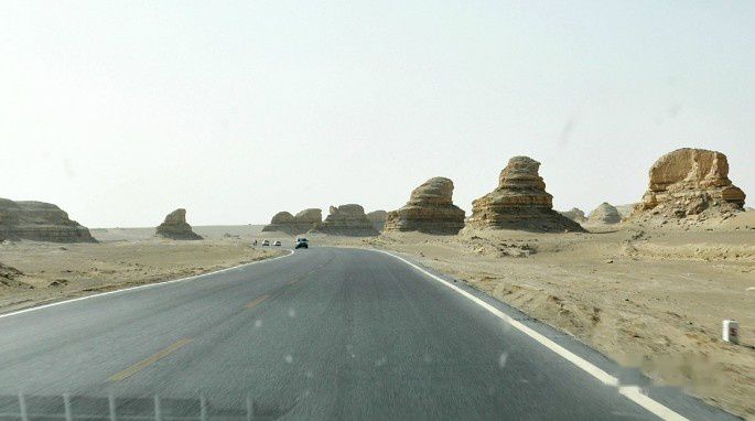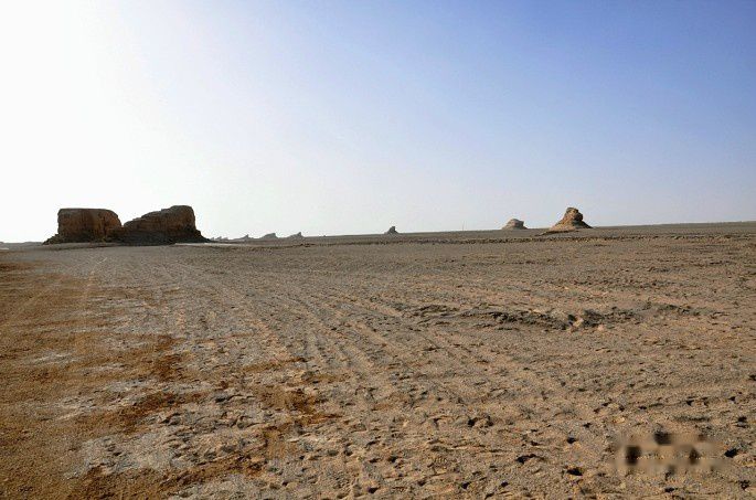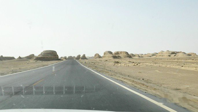 沿途尽是荒凉凄婉一望无垠的盐碱地,由于此地大风且无遮挡,生成的雅丹地貌比比皆是。
