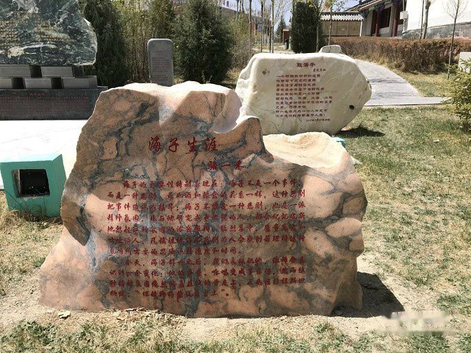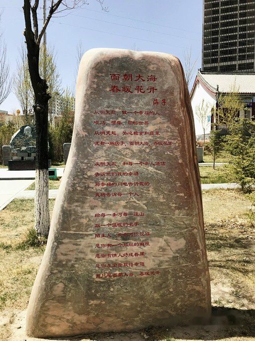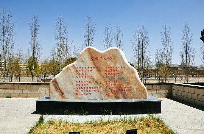 海子纪念馆位于德令哈市巴音河畔,在海子诗歌纪念馆后方,精选的海子18首优秀作品被雕刻在18块形态各异的石碑上,一同组成了海子碑林。
