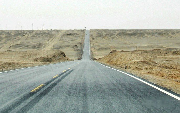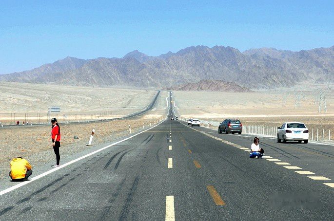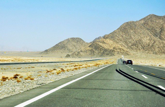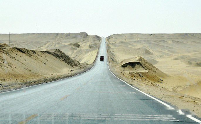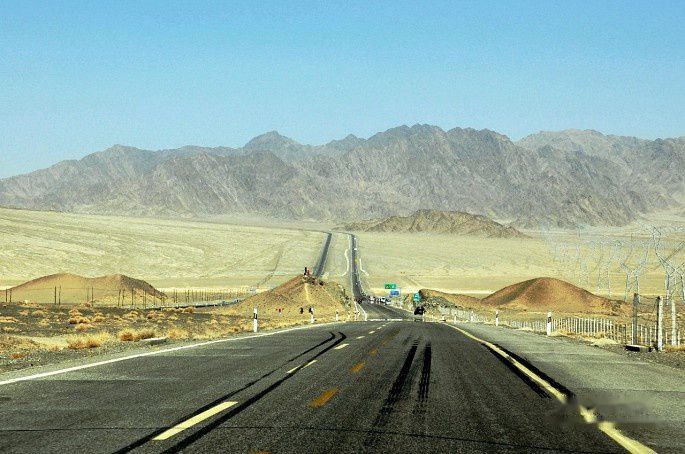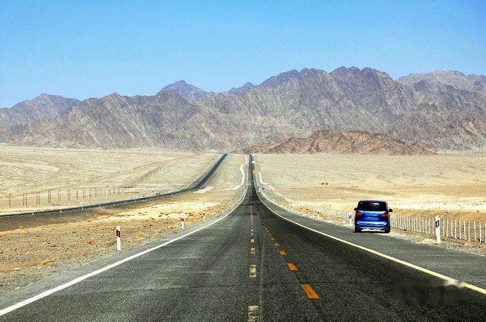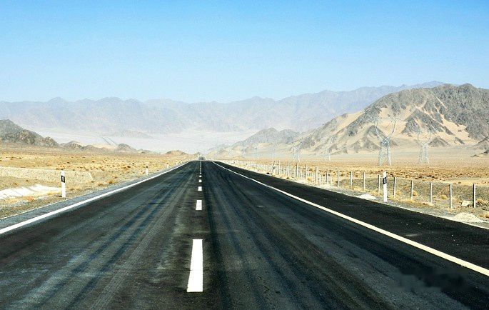 从高速公路转入G315国道,便来到了柴达木盆地一侧的无人区,公路笔直的延伸在戈壁滩上,通天公路一幕接一幕。