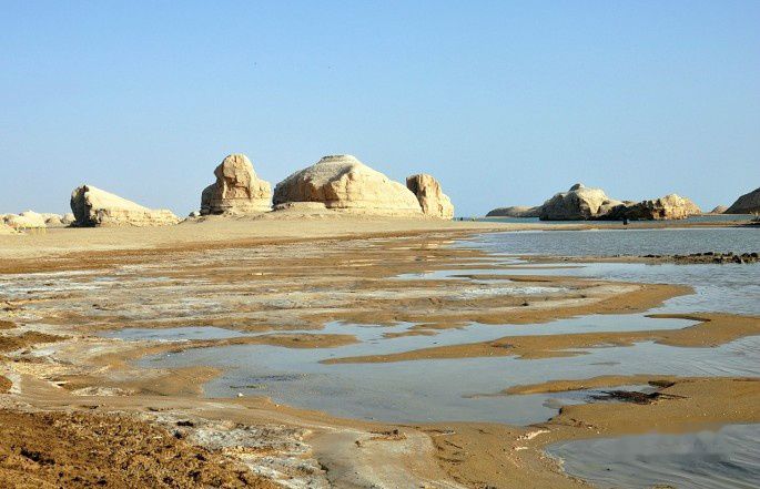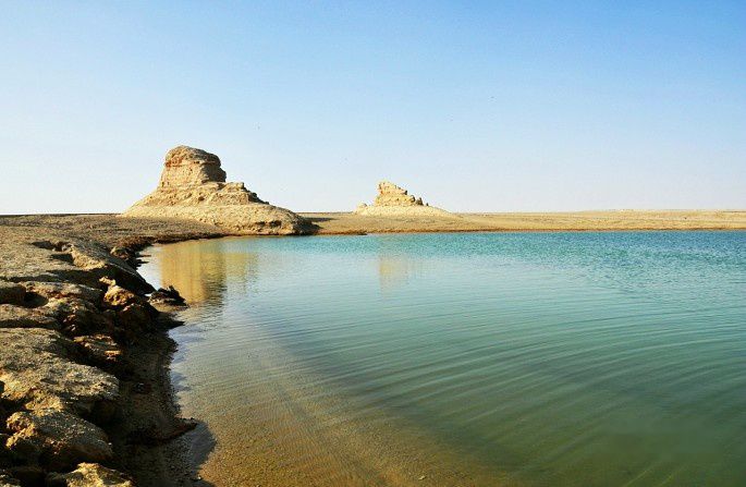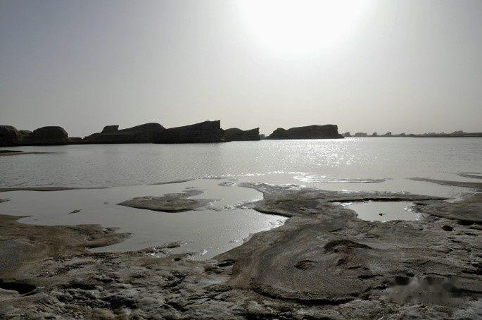因为吉乃尔湖面抬升,逐步淹没了附近的雅丹群,便形成了此地独一无二的水上雅丹地貌。