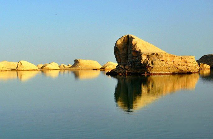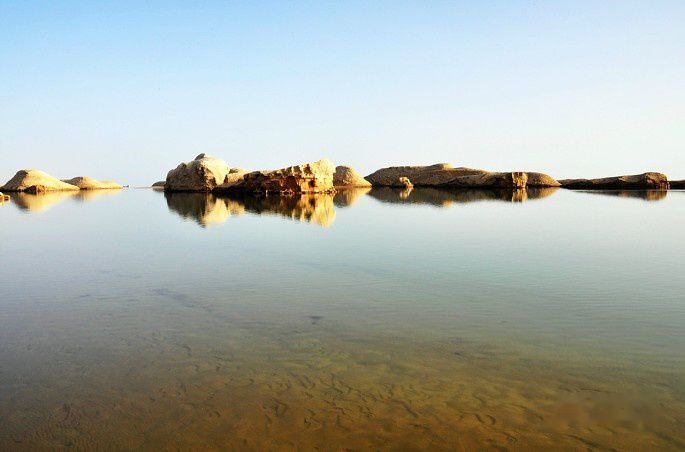 此时的水上雅丹又如同静谧的海市蜃楼,奇异的沙丘造型,独特的地理地貌令人着迷。
