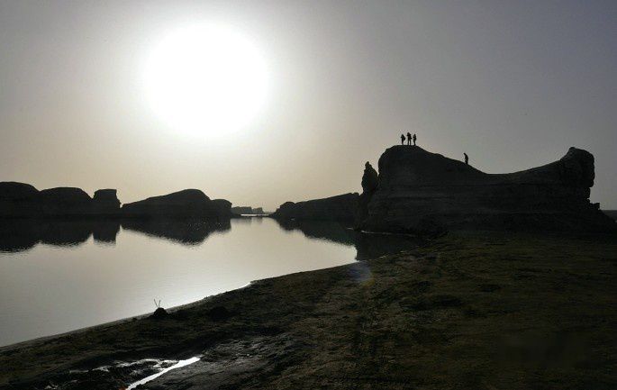 当太阳即将跌落水中时,逆光的水上雅丹世界,更是将这份迷幻推向了极致!