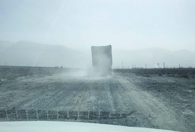 一路风沙让车窗布满尘土,连带车上抓拍的照片也满是“风沙味”。