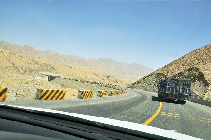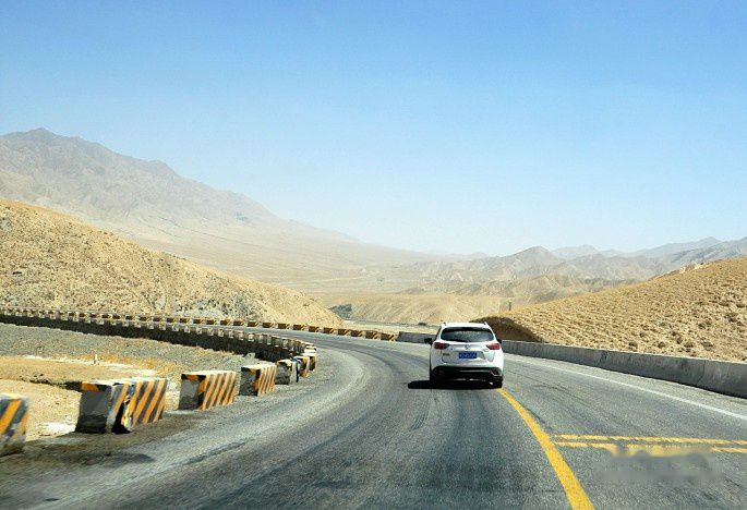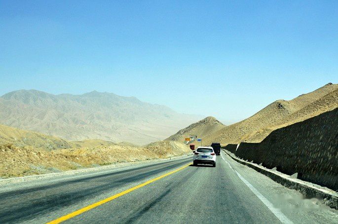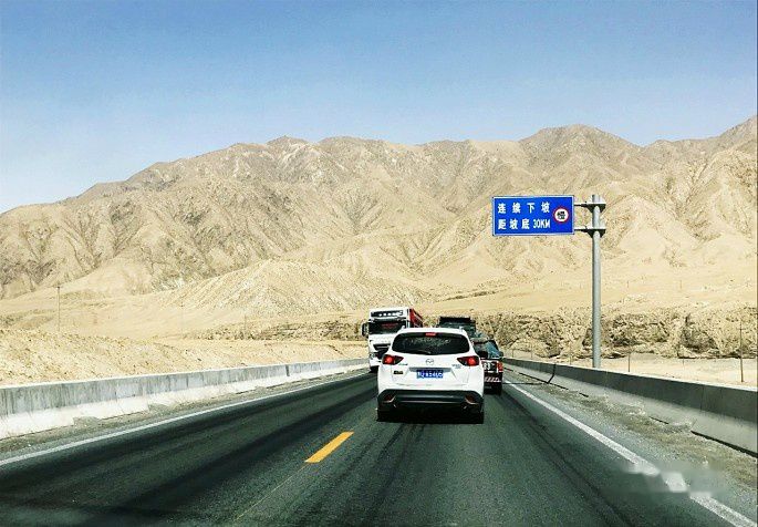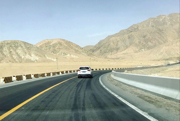 从阿克塞废弃小镇到达新的县城,20多公里路海拔直降1000米。这段笔直而连续下坡的道路估计交通意外不少,现在采取了严格的区间测速,人在旅途,安全第一!